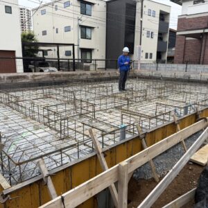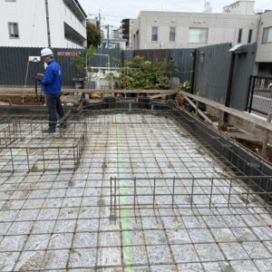本日、第三者機関による基礎配筋検査を実施いたしました。