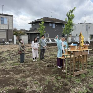 先週末には、お施主様と一緒に地鎮祭を執り行い、近隣の皆様へのご挨拶を済ませて、いよいよ本格的な着工を迎えました。