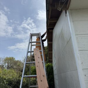 交換場所がかなり高い為、3メートル以上の脚立を使って仮設の足場を架け、安全に作業を進めました。